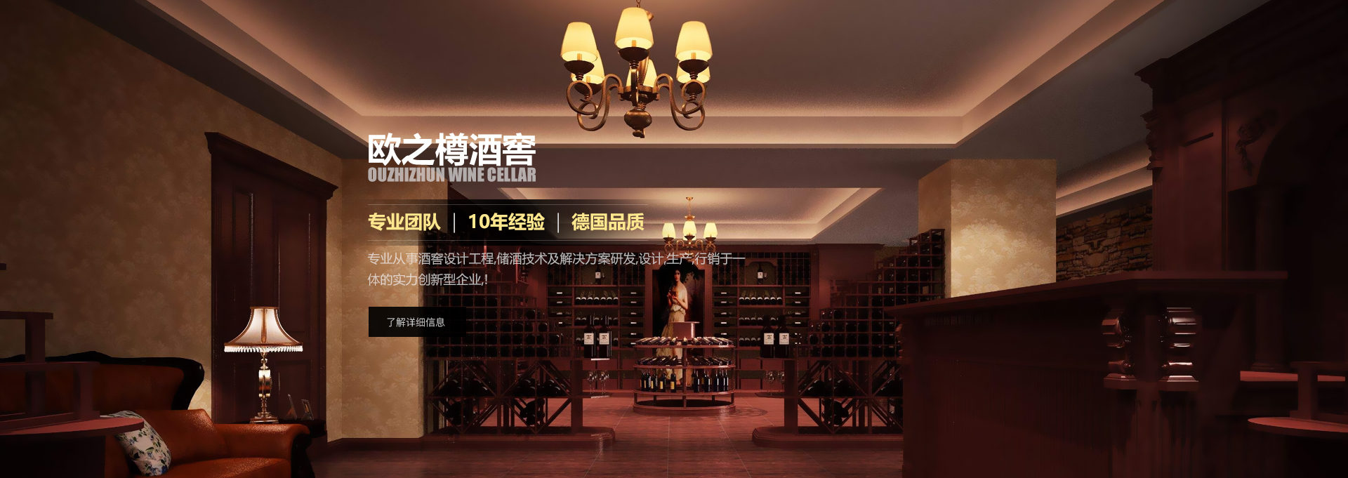 歐之樽酒窖專業(yè)的設(shè)計(jì)團(tuán)隊(duì),通過學(xué)習(xí)歐美成功酒窖的經(jīng)驗(yàn)與國內(nèi)市場相結(jié)合,使得我們的設(shè)計(jì)充滿著歐美氣息的中國風(fēng)。能讓你在緊張的城市氛圍中找到在大自然 中享受美酒的感覺。歐美進(jìn)口的全自動控溫控濕系統(tǒng)既穩(wěn)定又方便,